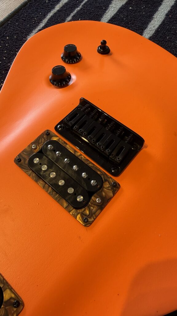 Zoek je een heldere kleur op het podium? Dit MN model is licht, speelt heerlijk. De kleur is intens oranje (op de foto’s is het lastig te zien) en de afwerking is mat. Alle hardware is zwart.